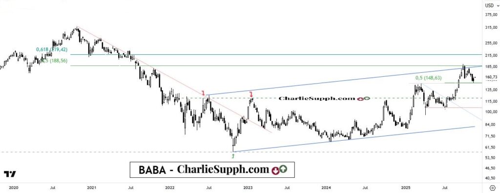 Este gigante chino del e-commerce acaba de presentar sus earnings, los cuales en principio han gustado a sus inversores, tras un muy buen arranque de semana durante la jornada de ayer y luego de haber alcanzado y respetado durante la pasada semana, el soporte representado por el 50 % de recorte del ultimo movimiento ascendente. De no variar dicha tendencia positiva que se observa en el pre a esta hora( 9.45am ), esta situación le daría aun mas entidad al gap de ruptura que se registrara ayer( ver para ello esta misma grafica en terminos diarios ) y obviamente dejaría la puerta abierta para ver valores mas importantes de cara al mediato. ( clickear para agrandar )