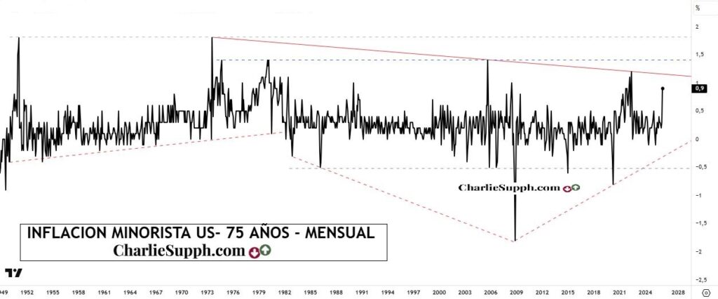 Se acaba de conocer la inflación minorista de los EEUU, el cual ya tiene incluido los efectos del conflicto bélico en Medio Oriente y el numero de por si es alto, un 0.9% mensual. Tal es así que un dato de esta magnitud no se registraba desde el año 2022. Sin embargo ha sido levemente por debajo del pronostico general que lo ubicaba en el 1%. La 1era reacción del mercado es marginalmente positiva y a esta hora en el pre open ( 9.45 am ) el futuro del SPX tiene un alza del 0.15%.( clickear para agrandar )